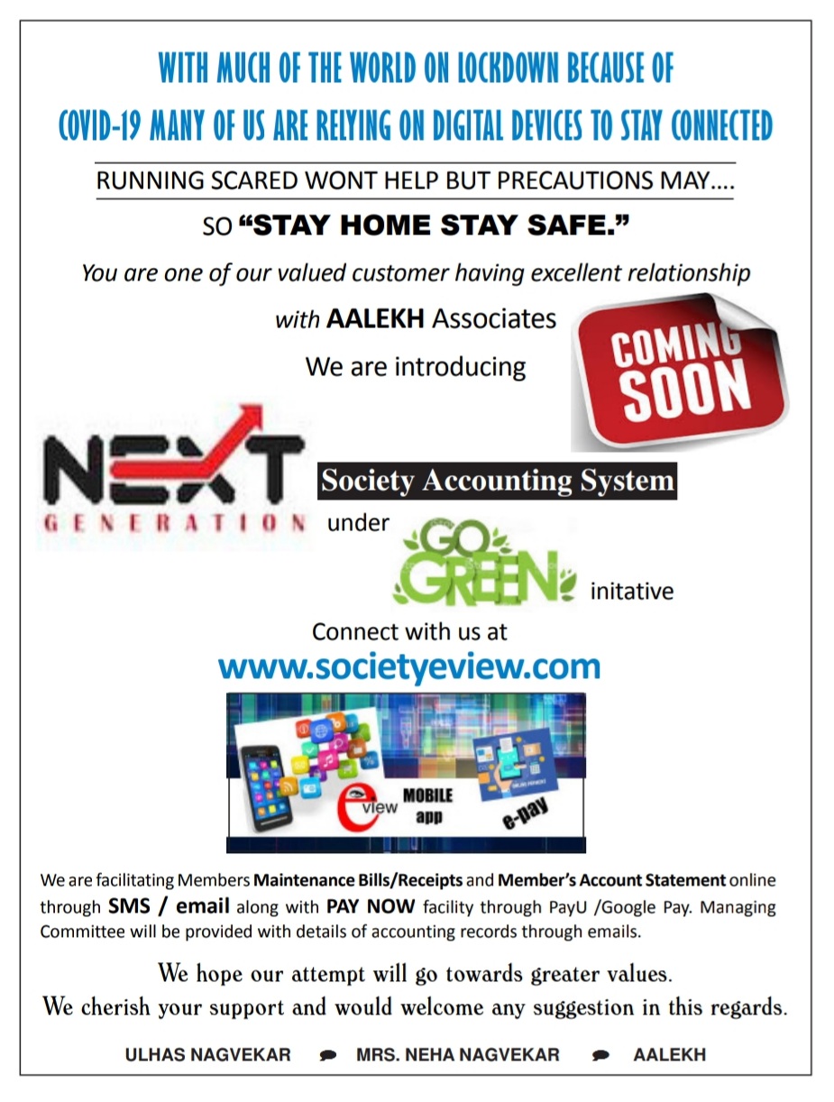 The software may skimp on paper use but not on performance, they always deliver with features like Go-Green Initiative with online facilities like Bill Receipts, Intimation of payment, Online Pay NOW, View online members accounts, Mail-SMS facility, NoteBook, Notice Board, Photo Gallery, Whatsapp Chat, Reminders and Online Video Conferancing.